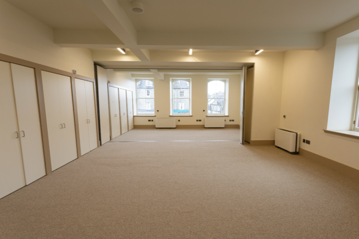 High speed broadband runs throughout the entire building and the heating is provided through a sustainable VRF Air source heating and cooling system supported by solar PV. There is an abundance of natural light with the installation of numerous windows and large skylights with natural ventilation to all floors. This fully refurbished centre provides a hugely valuable resource for an abundance of activities and events and draw visitors to Huntly.
